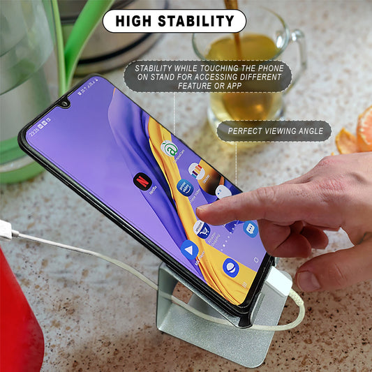 Rainbow Dots Sparkling Silver Cell Phone Stand, Phone Dock: Cradle, Holder, Stand for Office Desk Online class Mobile Holder