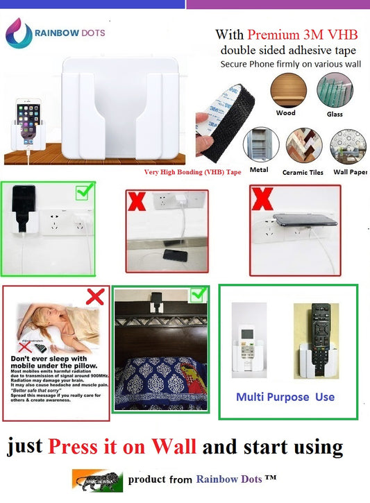 Rainbow Dots Pack of 1 Stand Wall Mount Mobile charging Holder white